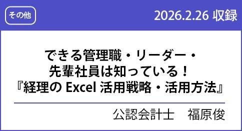できる管理職・リーダー・先輩社員は知っている!『経理のExcel活用戦略・活用方法』