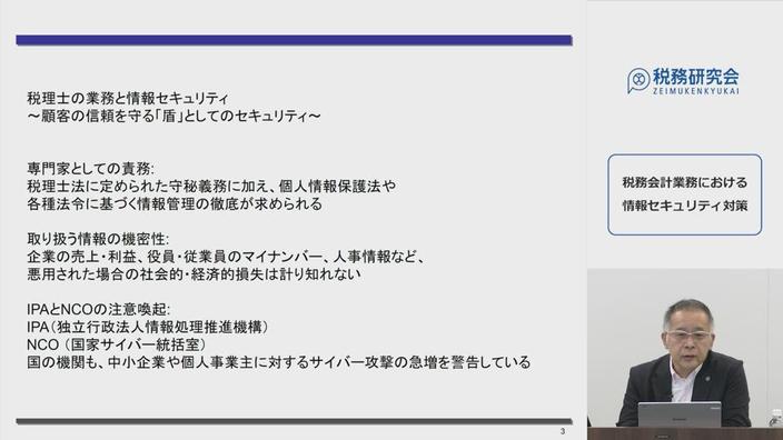 このセミナーでは、情報漏洩が引き起こすリスク、顧客の信頼を守る「盾」としてのセキュリティの重要性、いかに対策すべきか、守るべき基本原則、経営者が果たすべき役割、顧客の未来と事務所の未来を守るための方策等について、わかりやすく解説します。