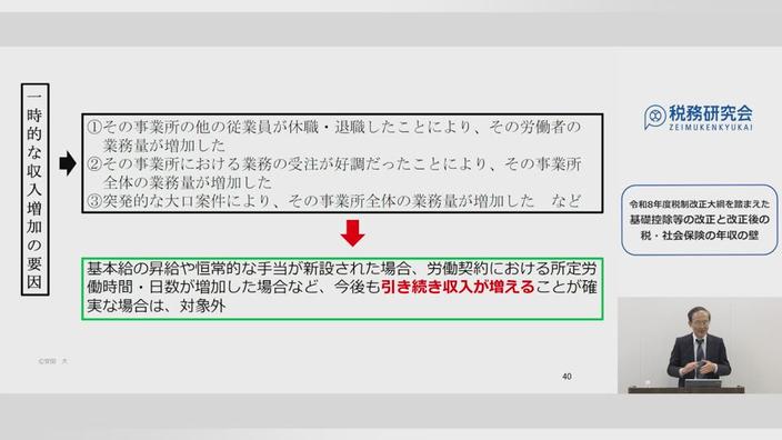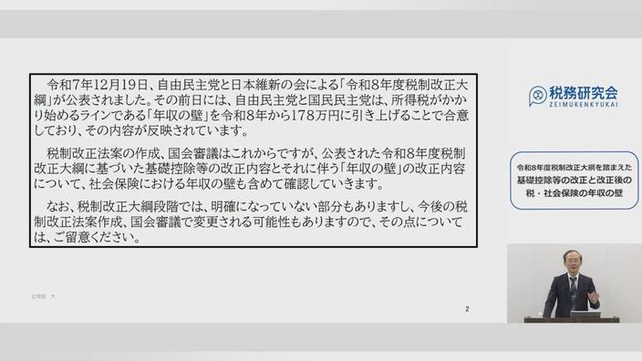 このセミナーでは、公表された令和8年度税制改正大綱に基づいて、所得税の基礎控除等の改正内容とそれに伴う「年収の壁」について、また、社会保険における「年収の壁」も含めて確認していきます。
