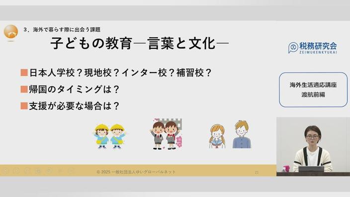 このセミナーでは、ご自身のお仕事のために海外へ転居される方、同行する配偶者という立場で海外へ転居される方、またお子さんとご一緒に海外へ転居される場合も想定して、その心構えについて、レクチャーします。