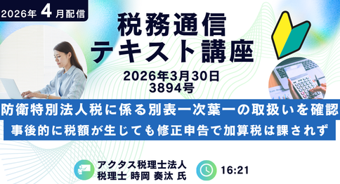 ・3894号(2026年3月30日)防衛特別法人税に係る別表一次葉一の取扱いを確認