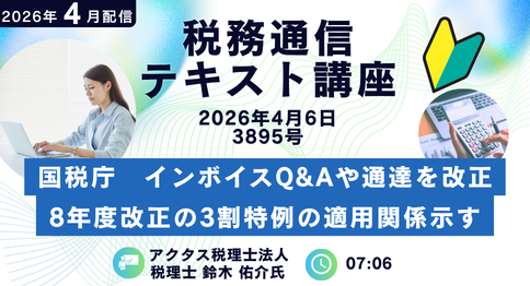 ・3895号(2026年4月6日)国税庁 インボイスQ&Aや通達を改正